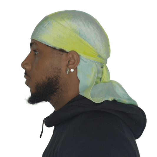 Blue Green Tiedye Velvet Durag Satin (Do rag) For Men/Women | Drippy Rags